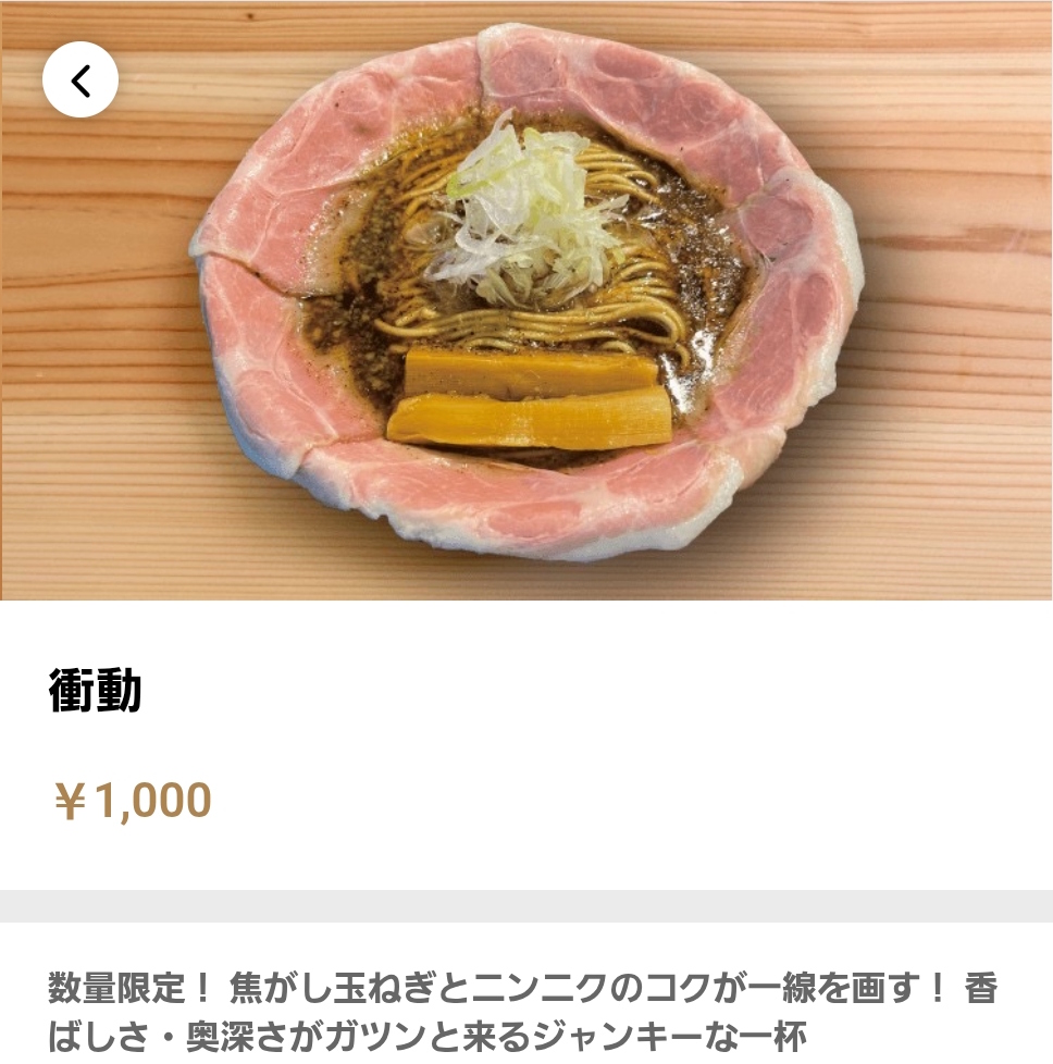 これはこれで美味しいけど、やはり「ピストル」(950円)の方がシンプルで好みだし、初めての場合は絶対に「ピストル」がオススメ。「ピストル」を何度か繰り返して、『あーたまには他の味も食べてみたいなぁー』って”衝動”に駆られたときに「衝動」を食べてみるのが良さそうw。