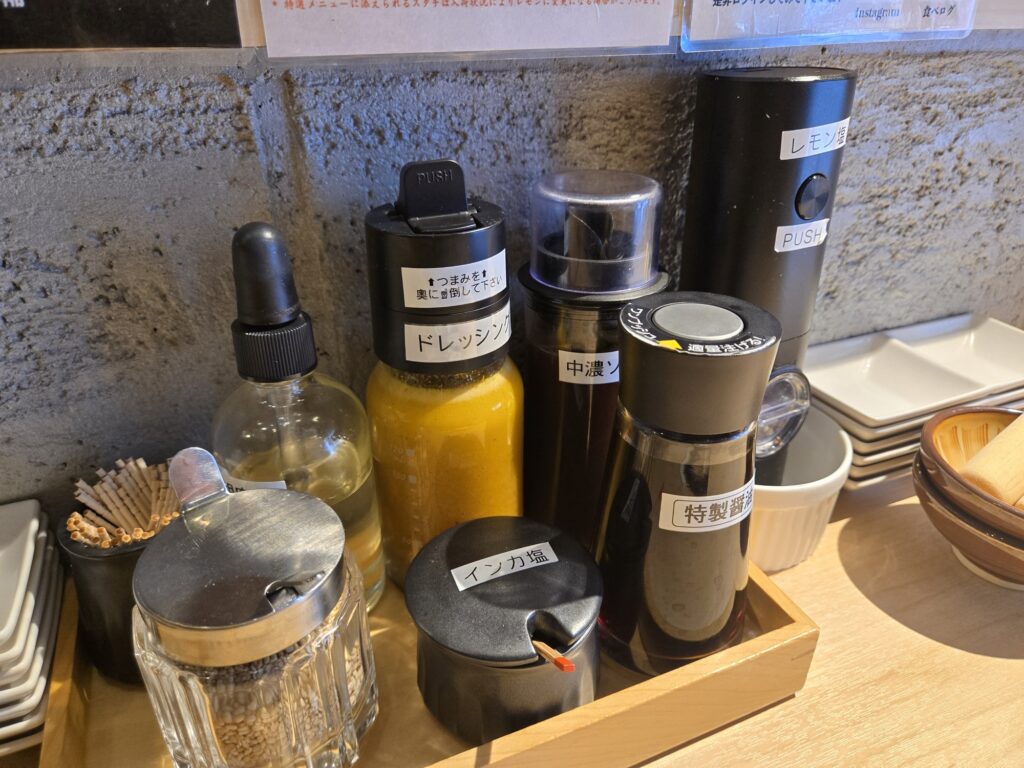さらにコダワリの調味料がたくさんあって、試すのがちょっと面倒wでしたが、それぞれ特徴があって楽しめたのですが、結局は「中濃ソースとすりゴマ」に辛子をつけて一気にペロリと完食。