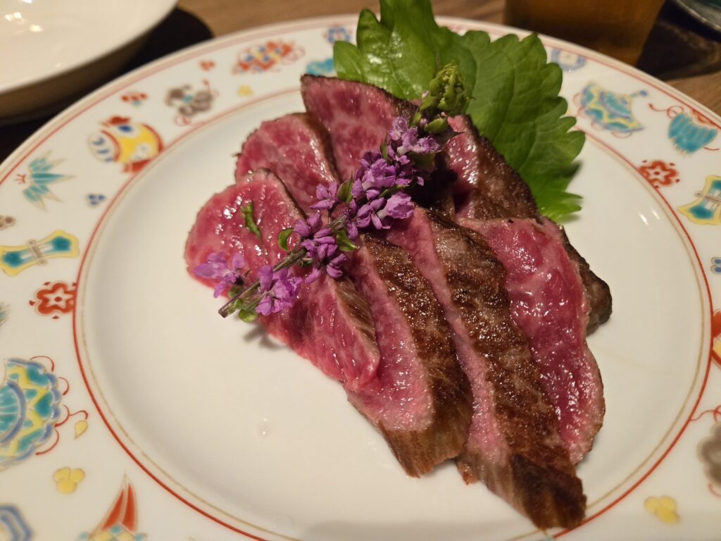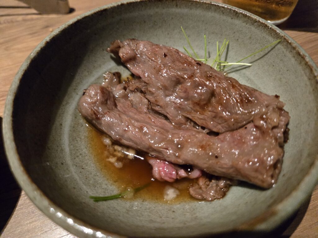 わさび醤油でいただいたのですが、肉自体の旨みと濃厚な醤油がベストマッチでサイコーに美味しくビールがススミます。