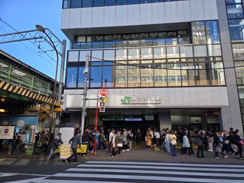 次の「新大久保駅」(JY16)までの線路の距離は1.4kmとちょっと長め。