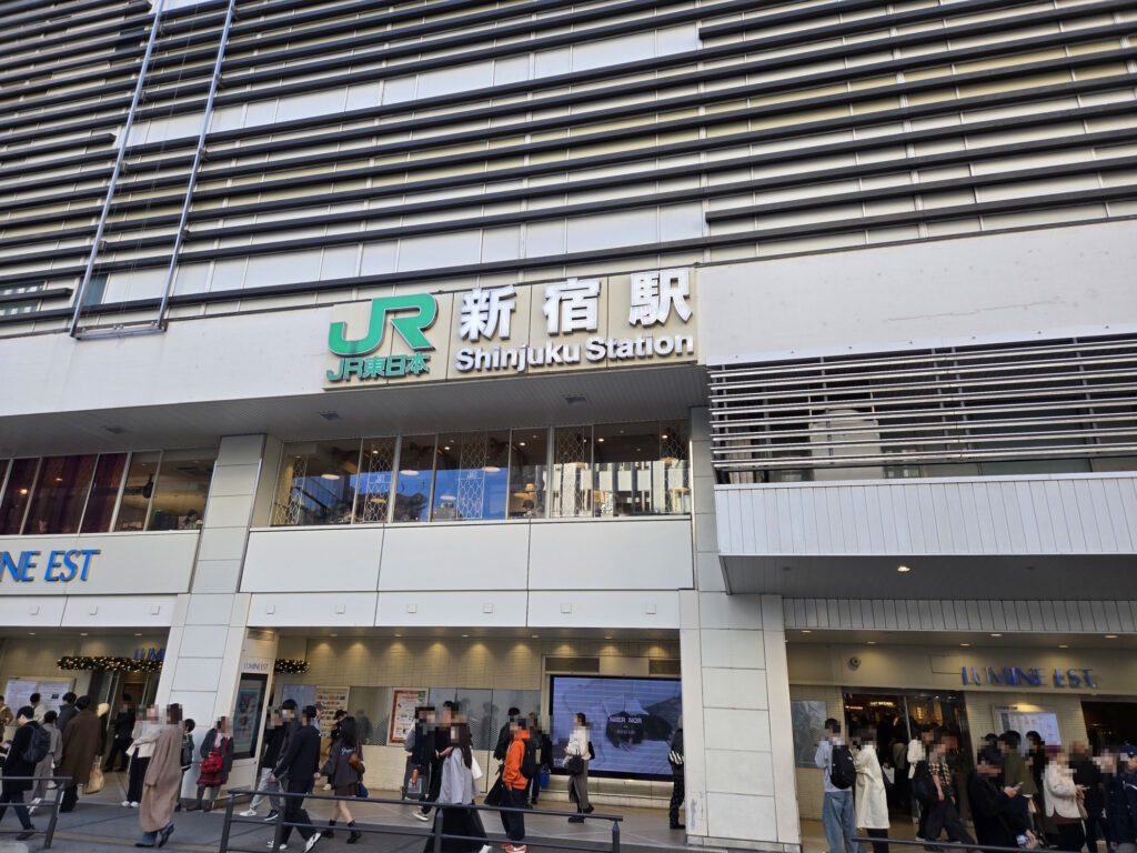 次の「新宿駅」(JY17、JC05、JB10、JA11、JS20)までの線路の距離は1.3km。
