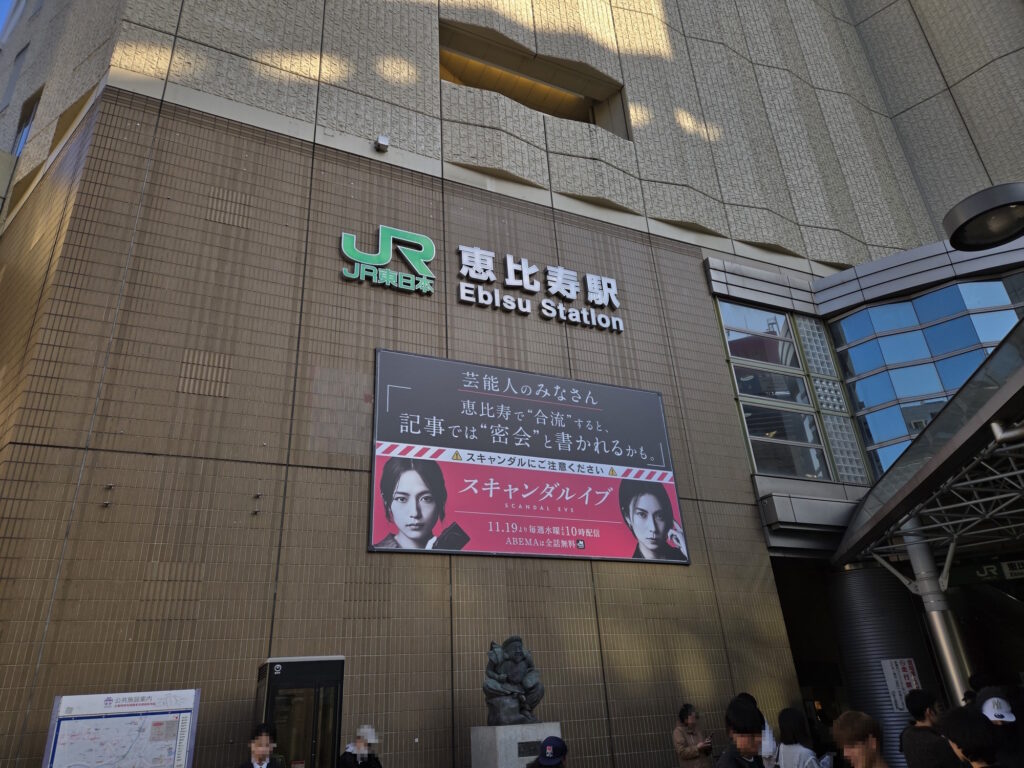 次の「恵比寿駅」(JY21、JA09、JS18)までの線路の距離は1.6km。