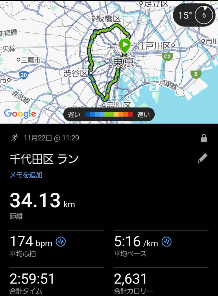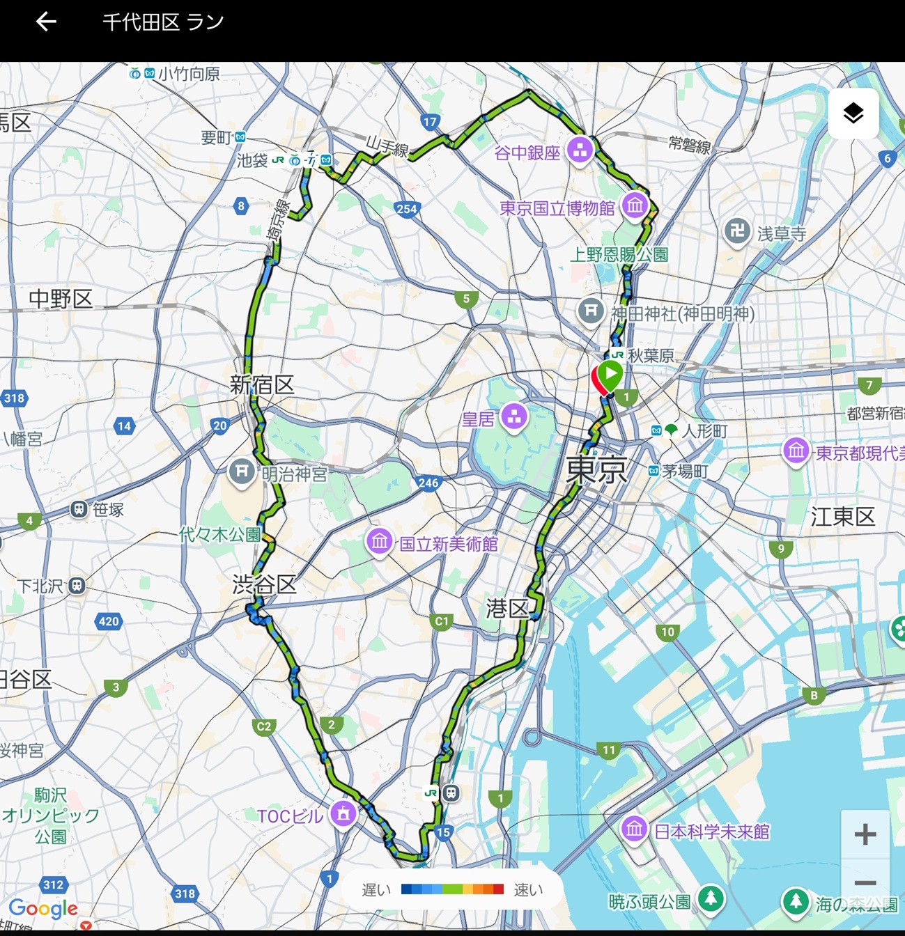 普通に30kmとか走るのはツラいですが、テーマを決めて走るとそれなりに楽しめた感じだし、どの駅からでもスタートできる周回コースなので、「山手線1周」のロングRUNは割とオススメです。