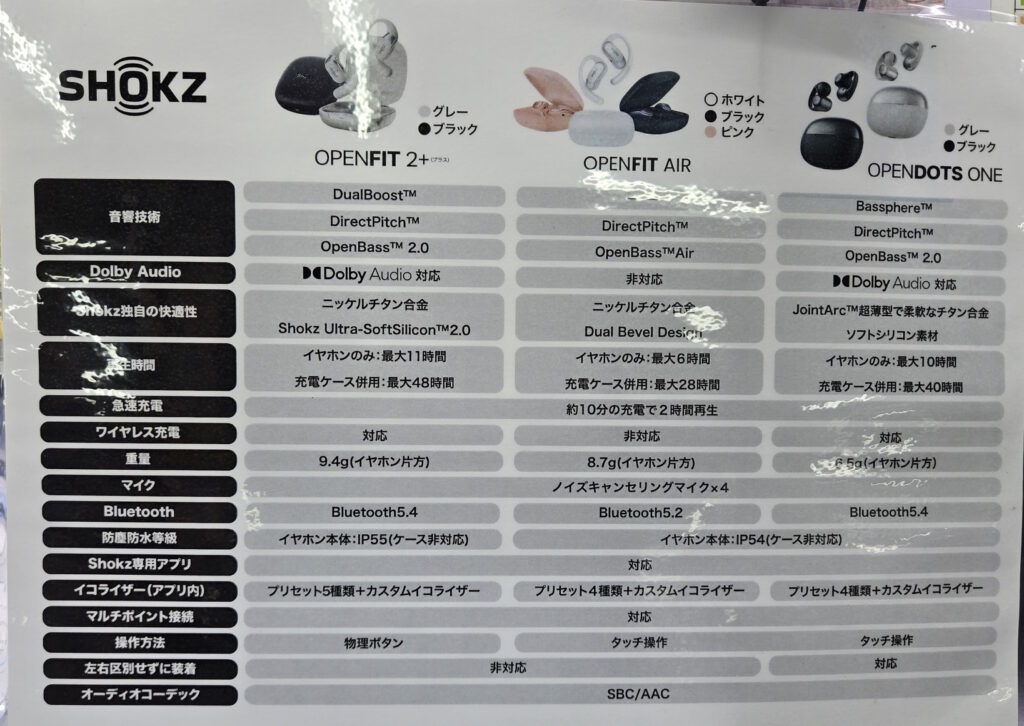 使い勝手も問題なかったので、「Shokz」で検討しつつ、店員さんと話して最近のトレンドなどをキャッチアップ。