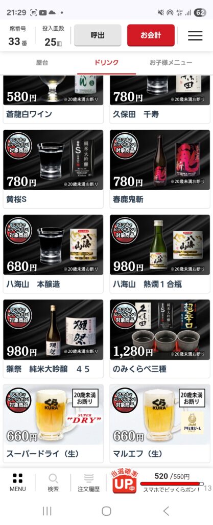 「くら寿司」アプリで事前予約していたので、すぐにお席にご案内~♪
