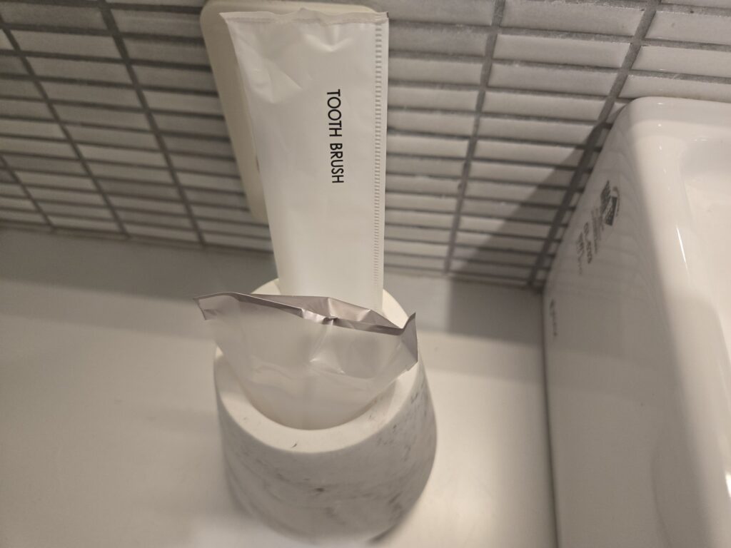 そして、ここで歯ブラシがあったのがありがたく、韓国のホテルは歯ブラシ有料になったのを思い出したので、これを利用させていただきます。ありがとうございました。