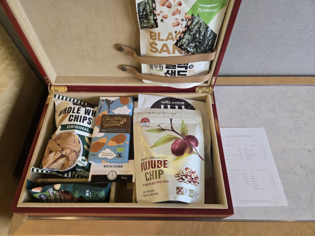 プラチナ特典について(滞在時の状況):ラウンジ利用で朝食が無料、ラウンジアクセス(カクテルタイム・朝食)を利用、(アップグレード特典ではない気がしますが)客室は東大門ビューのお部屋にしてもらい、レイトチェックアウトは13時まで利用しました。以前はレストランでの朝食無料があったようですが、今回の滞在では適用されていませんでした。