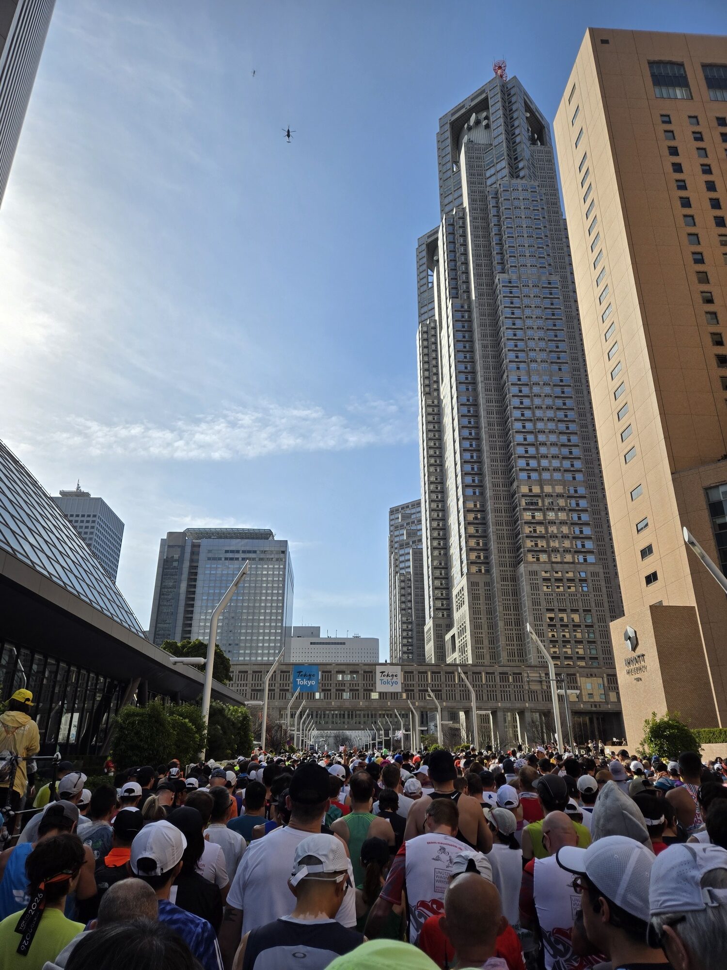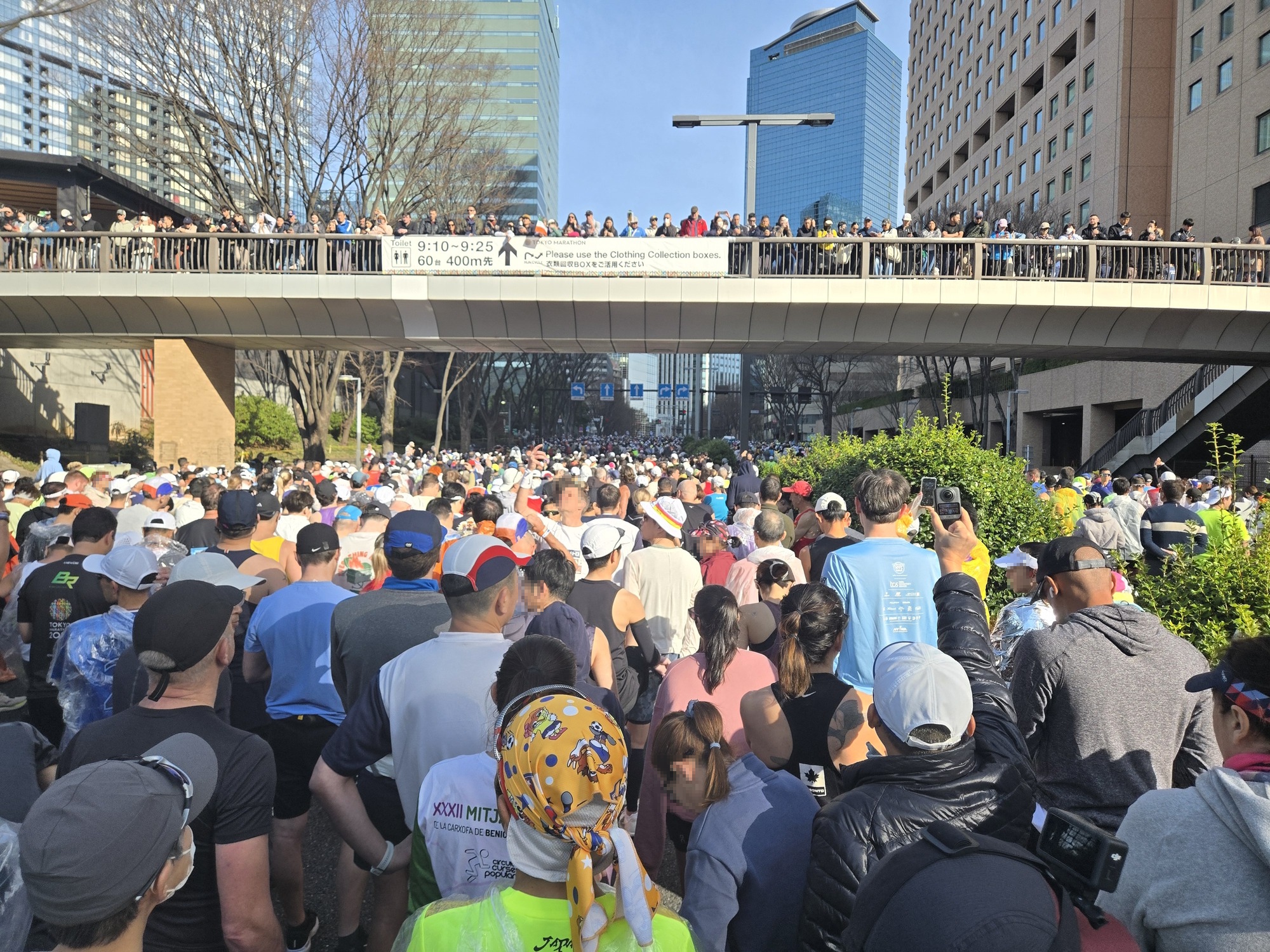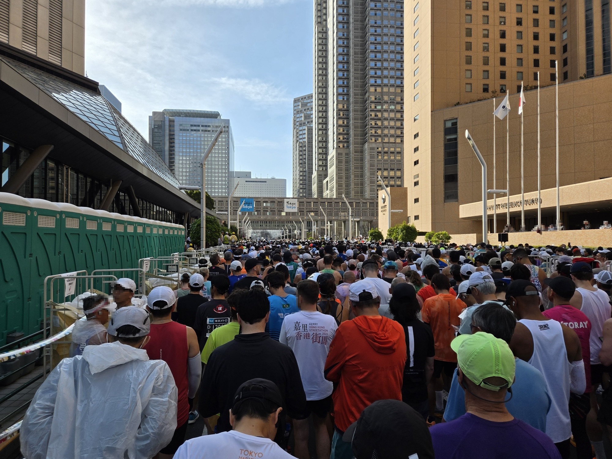 駅を出るとボランティアスタッフの方々に誘導されて、迷うことなく10分ほどでスタート地点の東京都庁に到着。大会の各ゲートは8時45分締切で、私は8時30分過ぎに到着して中に入りました。各ブロックへの入場締切は8時55分で、それを過ぎると最後尾からのスタートになるので、時間には余裕を持って会場に向かう必要があります。