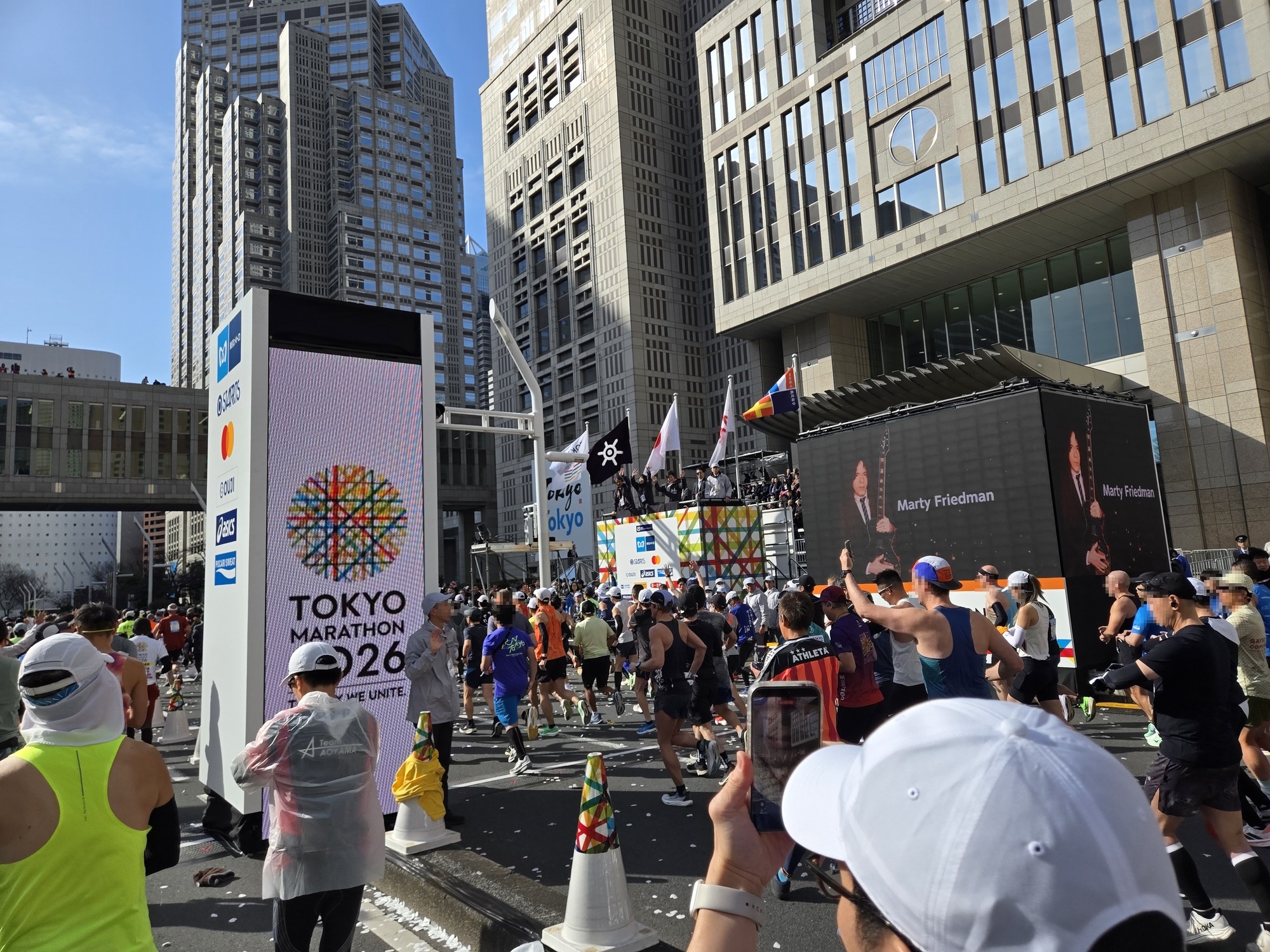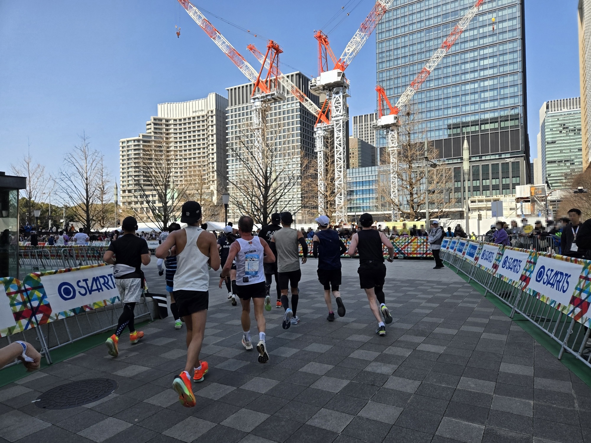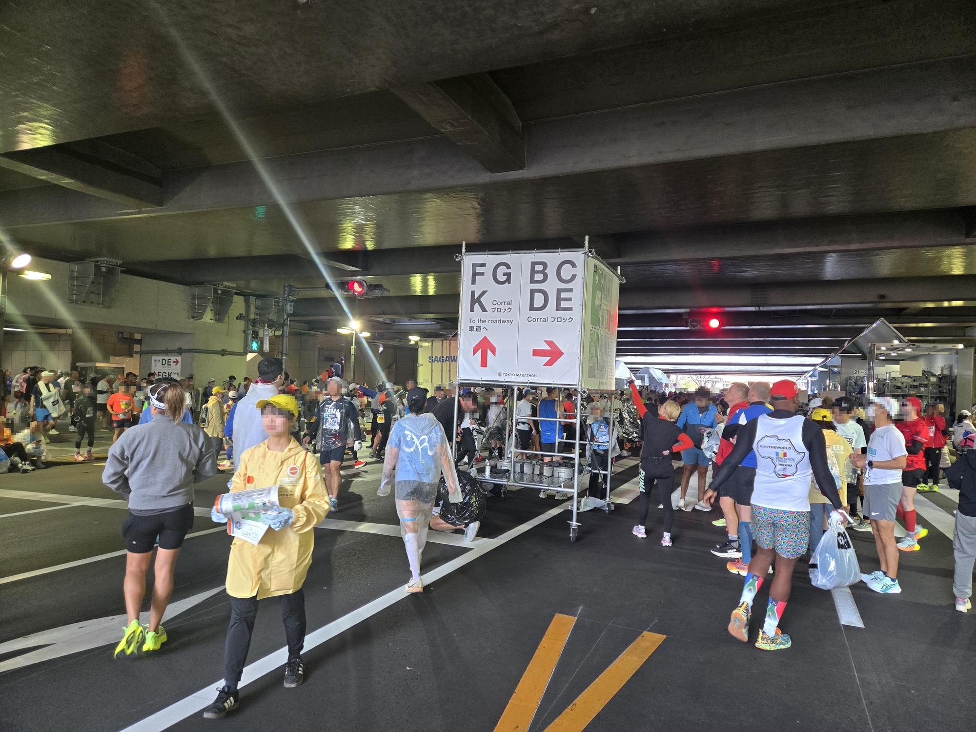 駅を出るとボランティアスタッフの方々に誘導されて、迷うことなく10分ほどでスタート地点の東京都庁に到着。大会の各ゲートは8時45分締切で、私は8時30分過ぎに到着して中に入りました。各ブロックへの入場締切は8時55分で、それを過ぎると最後尾からのスタートになるので、時間には余裕を持って会場に向かう必要があります。