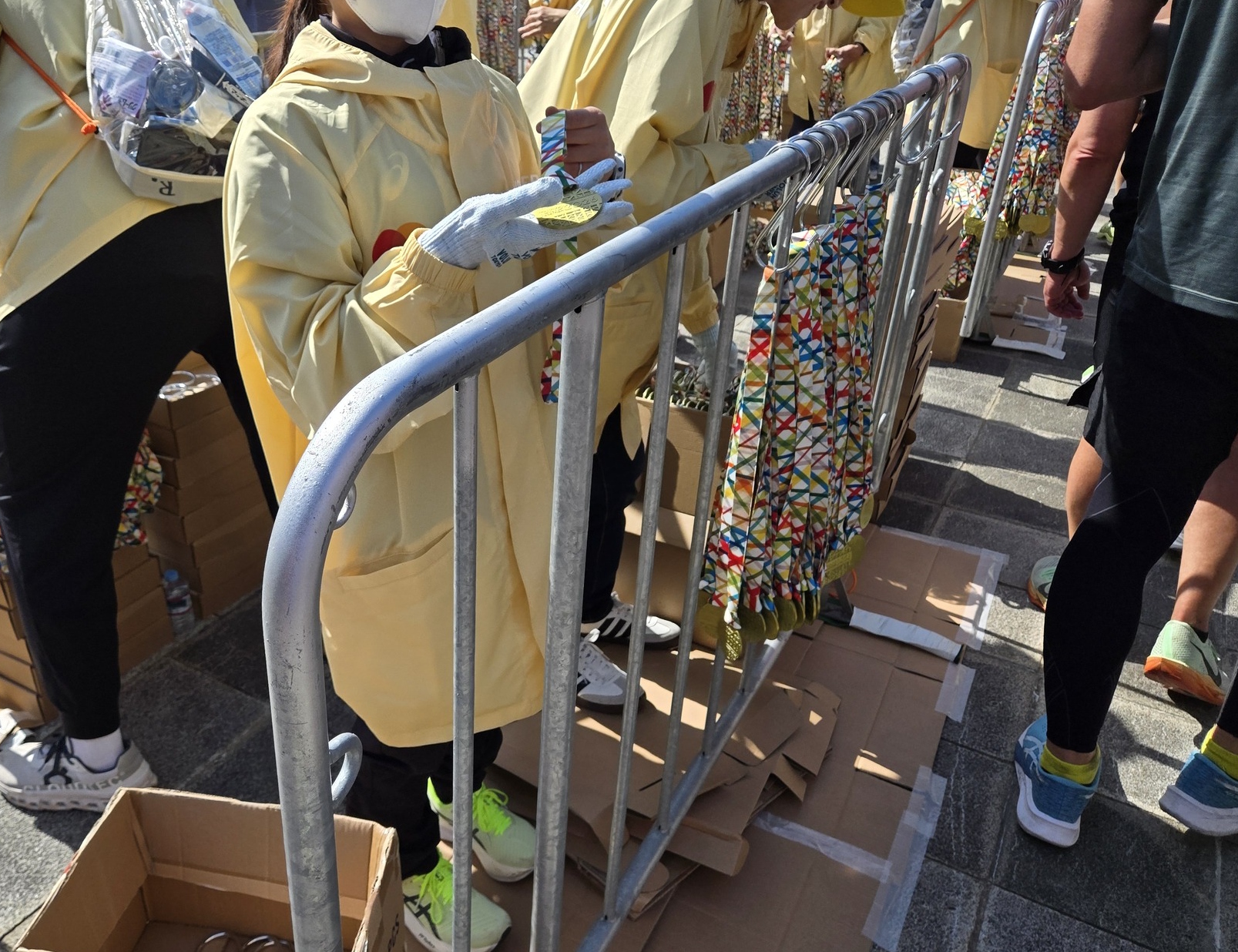 ゴール直後にはメダルをもらい、その後は、各スポンサーの試供品などを順番にもらい、最後にフィニッシャーローブ(※)をもらいました。