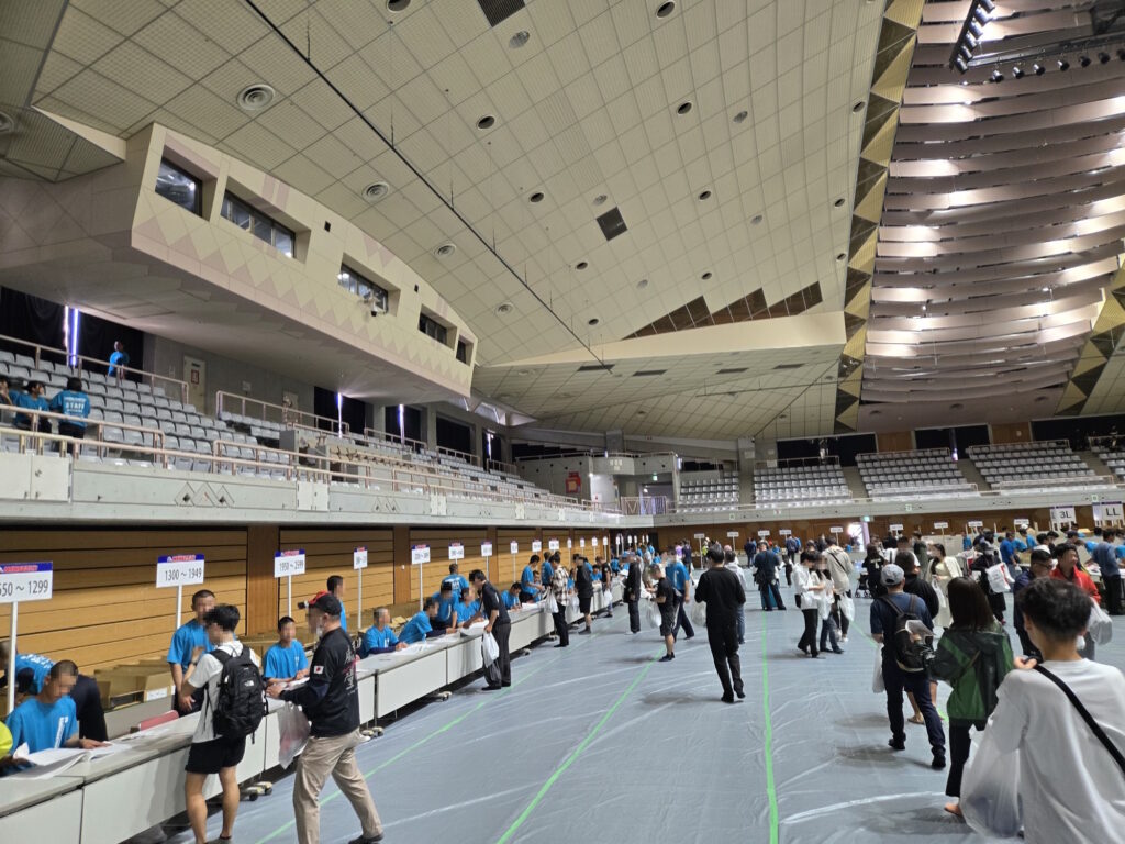 前日(土)に受付を済ませてゼッケンをもらう必要があります。