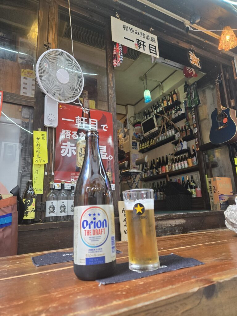 ということで、早速、塾長とオリオンビールでカンパイ!